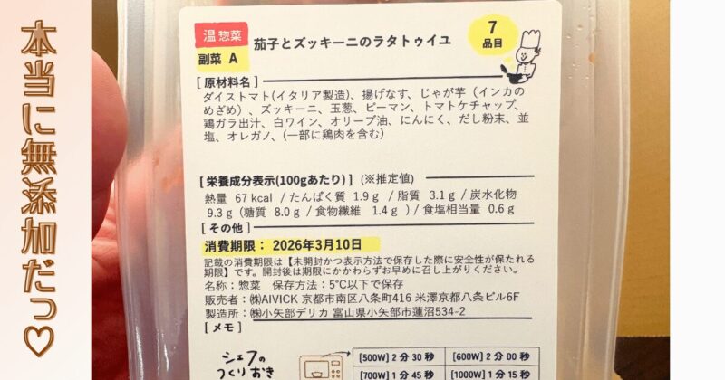 茄子とズッキーニのラタトゥイユの原材料を見てみると、