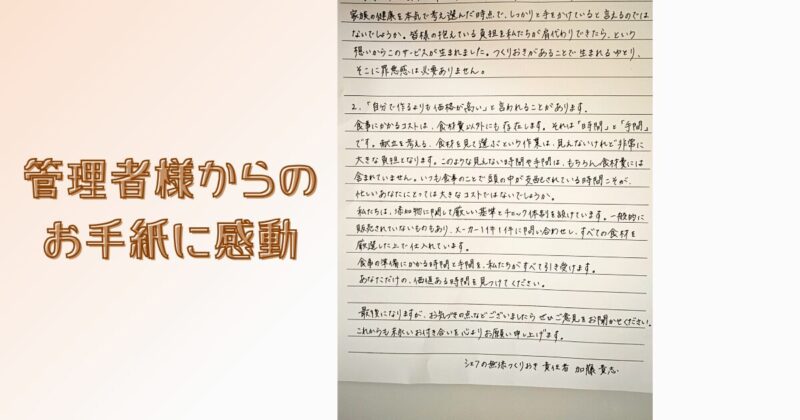箱の中に入っていた管理者からの手書きメッセージを読んで、考え方が変わりました。